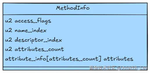 - u1:1字节无符号数(可用于表示魔数、访问标志等)