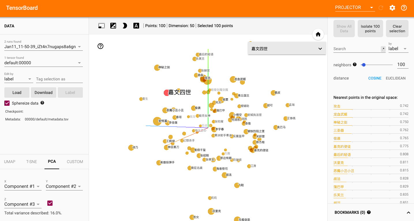 浏览器展示并可以使用右侧近邻词汇功能检验效果: