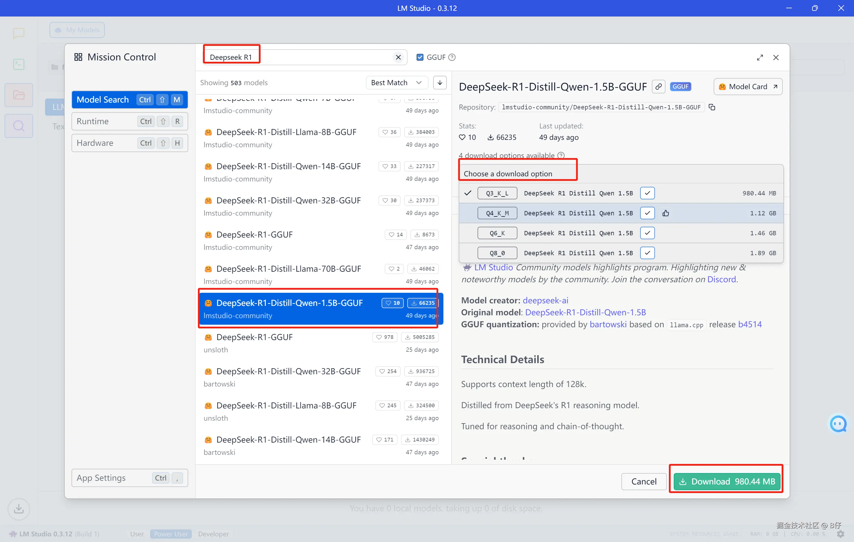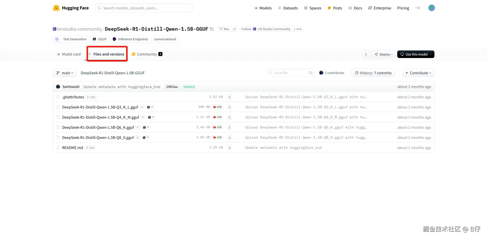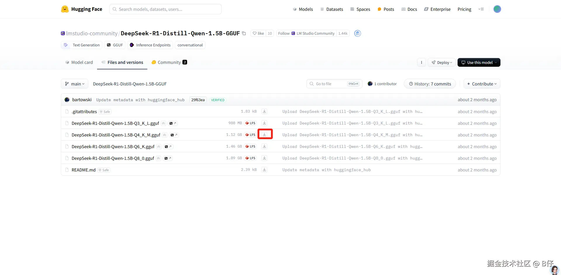 这里选择 lmstudio-community/DeepSeek-R1-Distill-Qwen-1.5B-GGUF