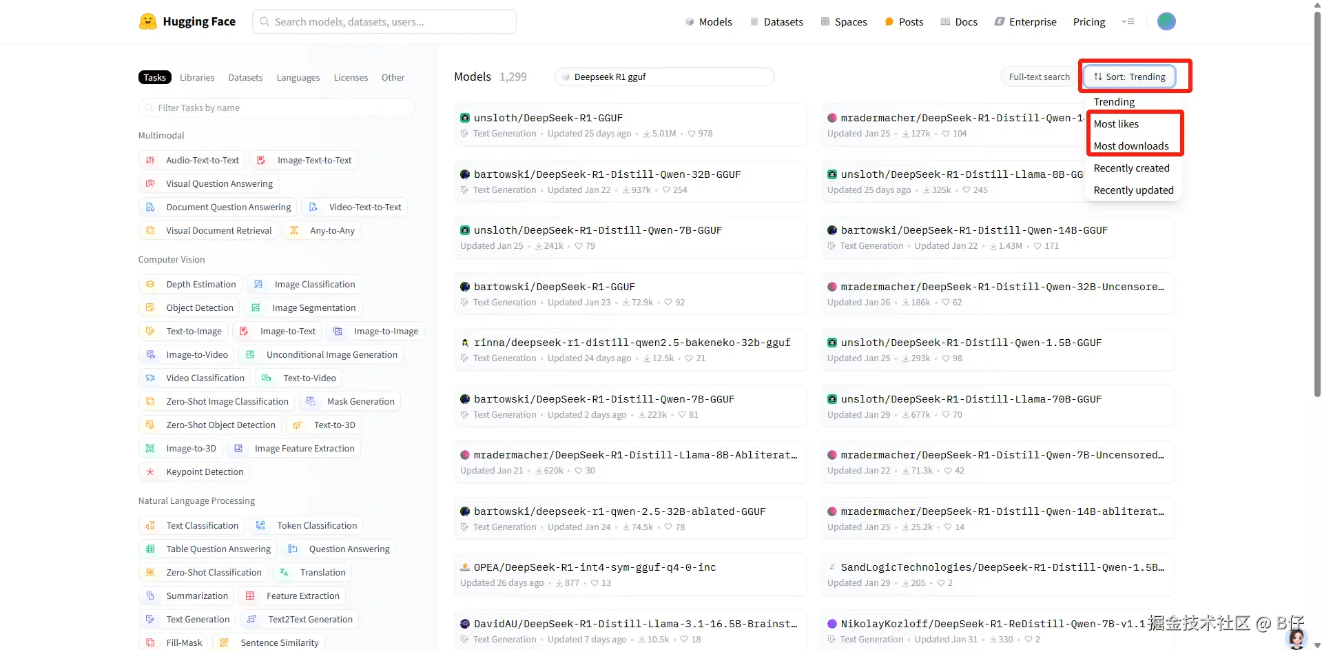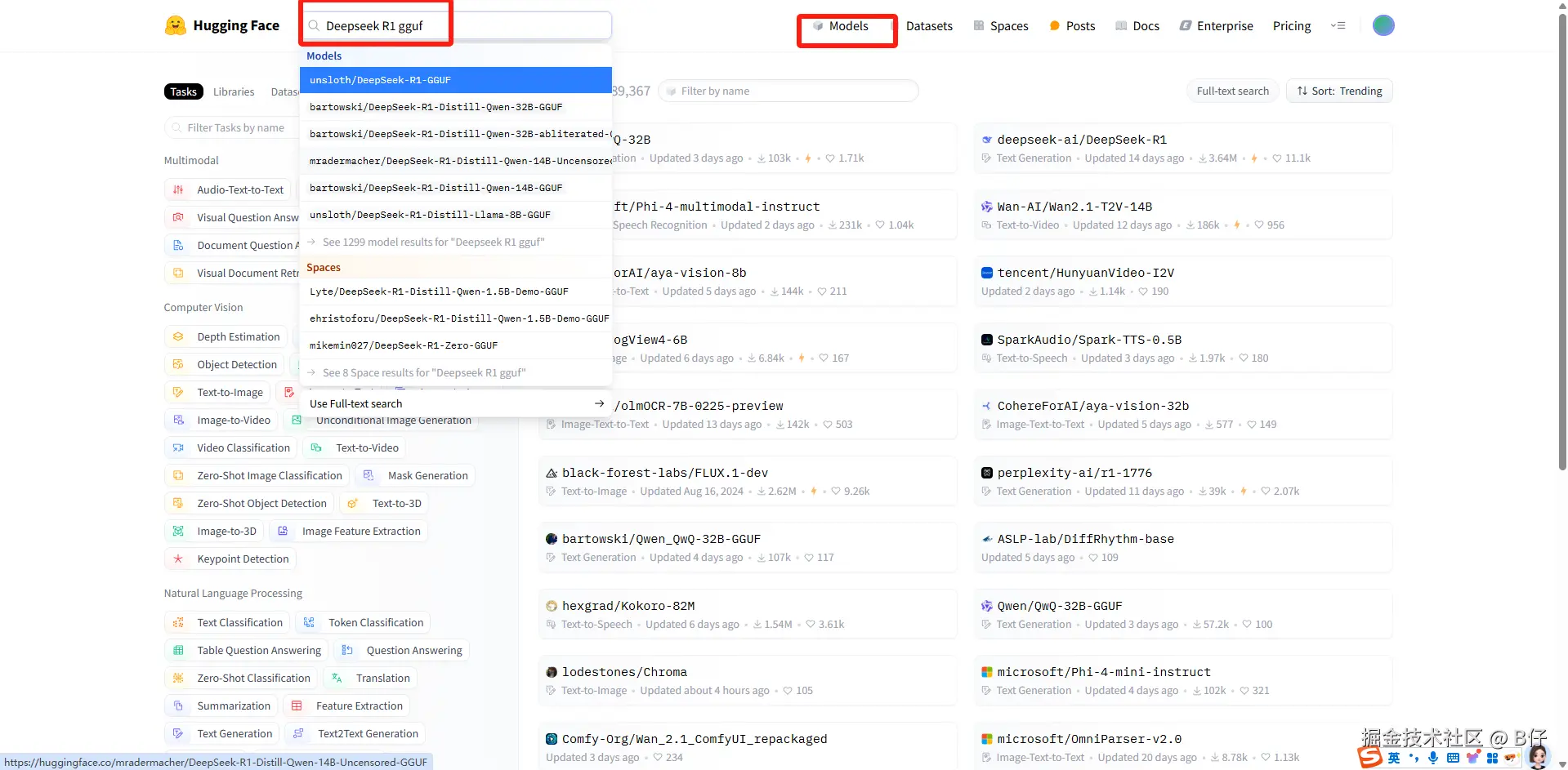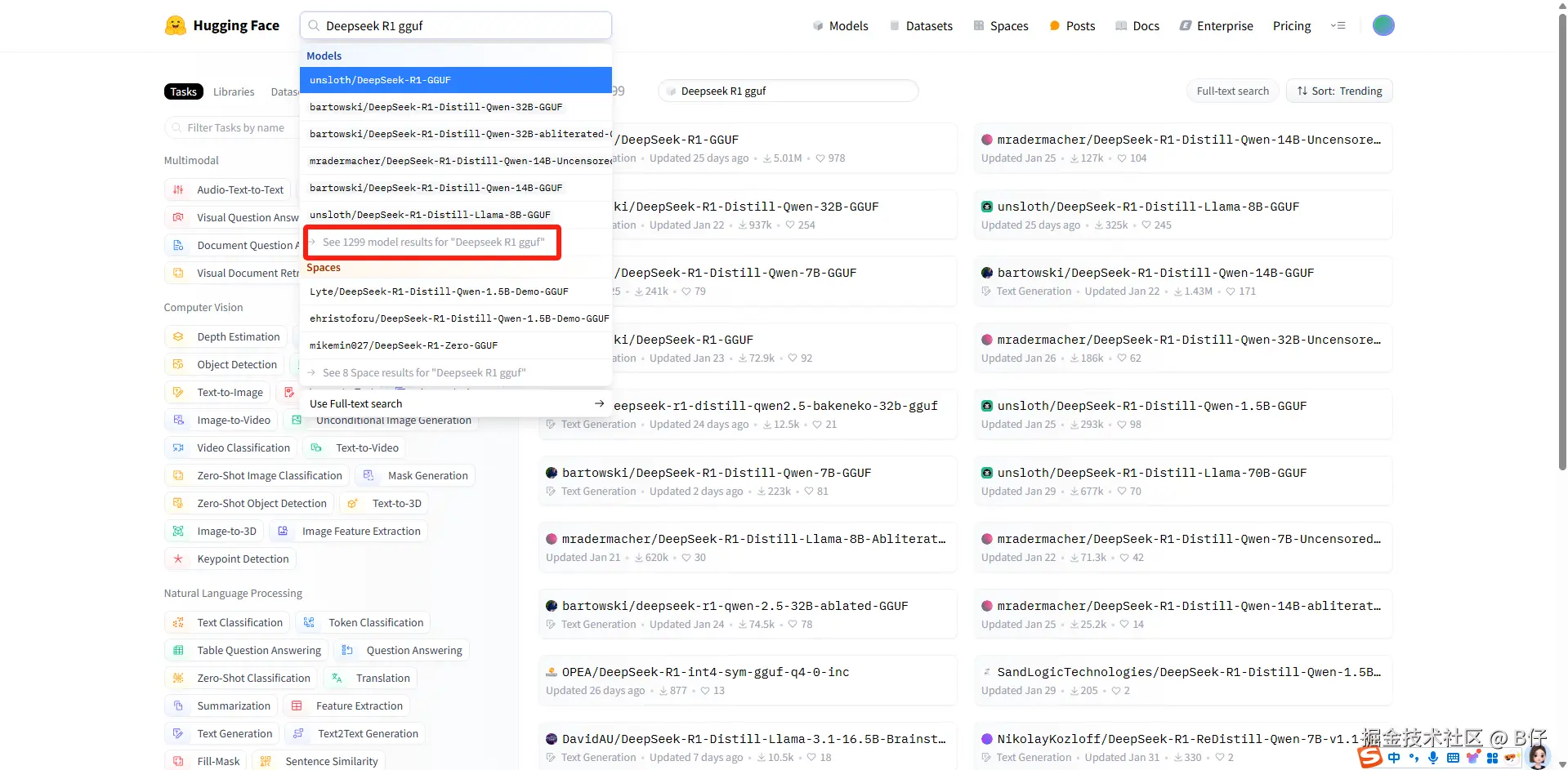 选择模块 模型,搜索 Deepseek R1 gguf