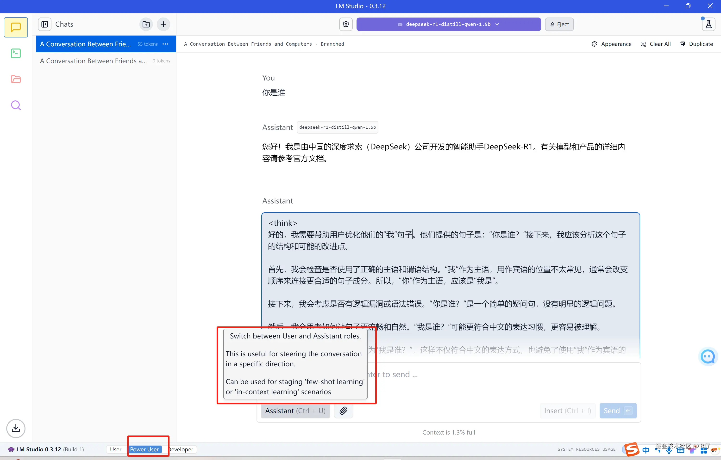 可以随意切换 User 和 Assistant 角色
