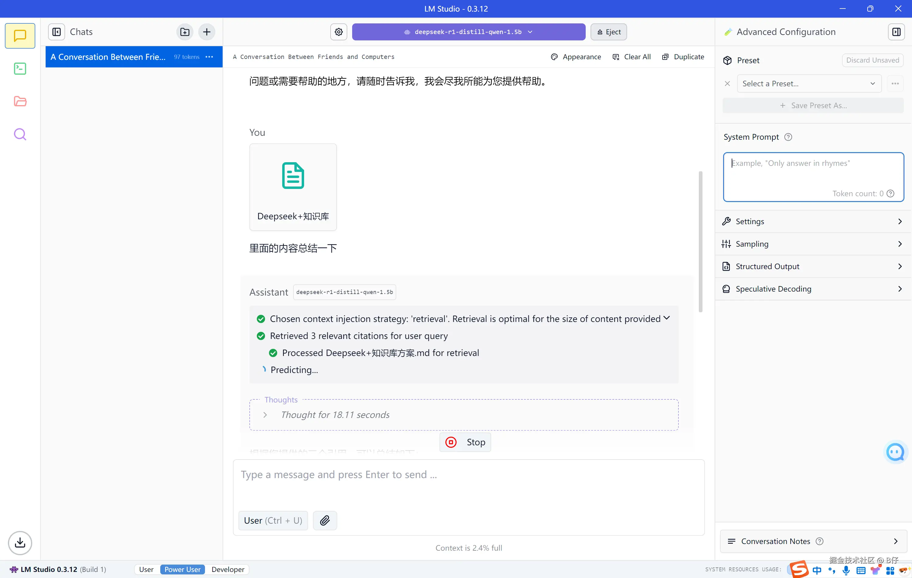 - 快速部署:LM Studio 简化了模型部署的流程,减少了繁琐的环境配置步骤。它会自动处理模型依赖的各种库和环境变量,用户无需花费大量时间去安装和配置这些依赖项,就能快速将 DeepSeek 模型部署到本地环境中并开始使用。