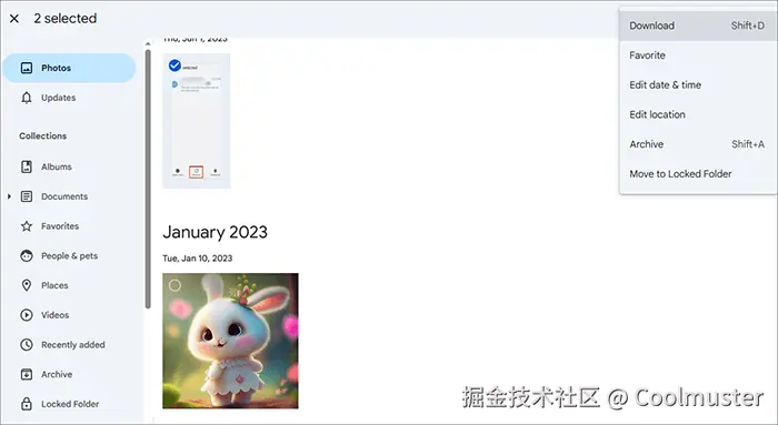 步骤 5. 在右上角,您将看到一个带有三个点的菜单。单击这些点并选择“下载”。您还可以批量选择多张照片,然后单击右上角的下载按钮一次性下载全部照片。