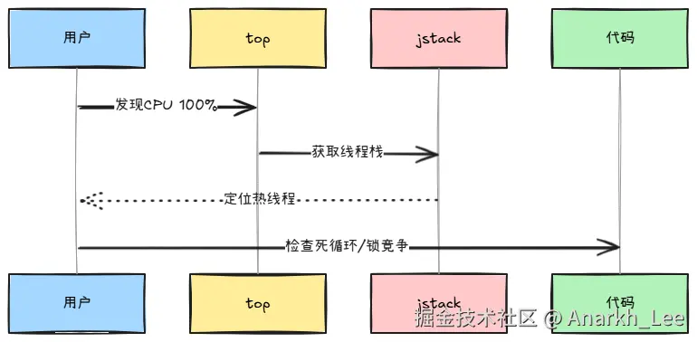 <font style="background-color:rgb(252, 252, 252);">top -Hp pid</font>定位线程<font style="background-color:rgb(252, 252, 252);">jstack pid > thread.log</font>导出栈信息- 将线程ID转换为16进制对应栈信息