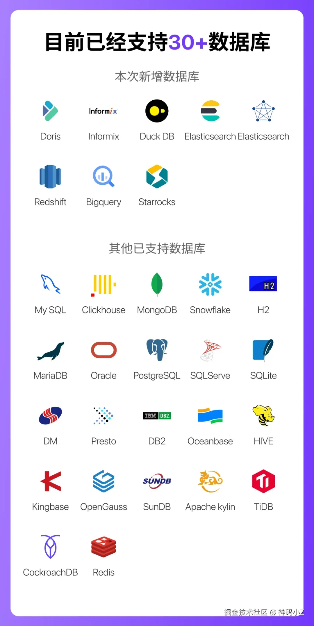 Chat2DB是由曾经阿里巴巴团队成员开发的一款AI驱动的开源数据库管理和分析工具,能够操作关系型和非关系型数据库,目前支持的数据库类型如下: