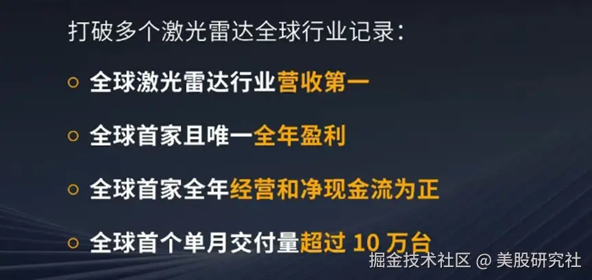 客户池稳定扩大,一个里程碑时刻在2024年底到来。12月,禾赛单月出货量突破10万台,成为全球首个达成单月交付量超过10万台的激光雷达企业。