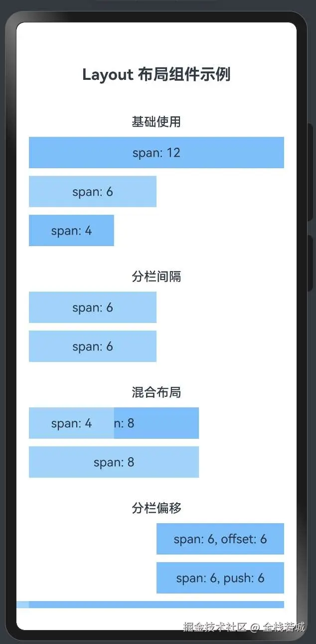 嵌套布局是HarmonyOS Layout布局组件系统中的一项强大功能,通过在AutoCol组件内部再次使用AutoRow组件,可以创建复杂的多层次布局结构。这种技术特别适合用于创建复杂的页面布局、卡片布局等。
