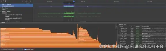 Native Callstack:基于时间轴展示进程/线程的活动状态,以及在一段时间内对CPU的占用情况和函数调用栈。
