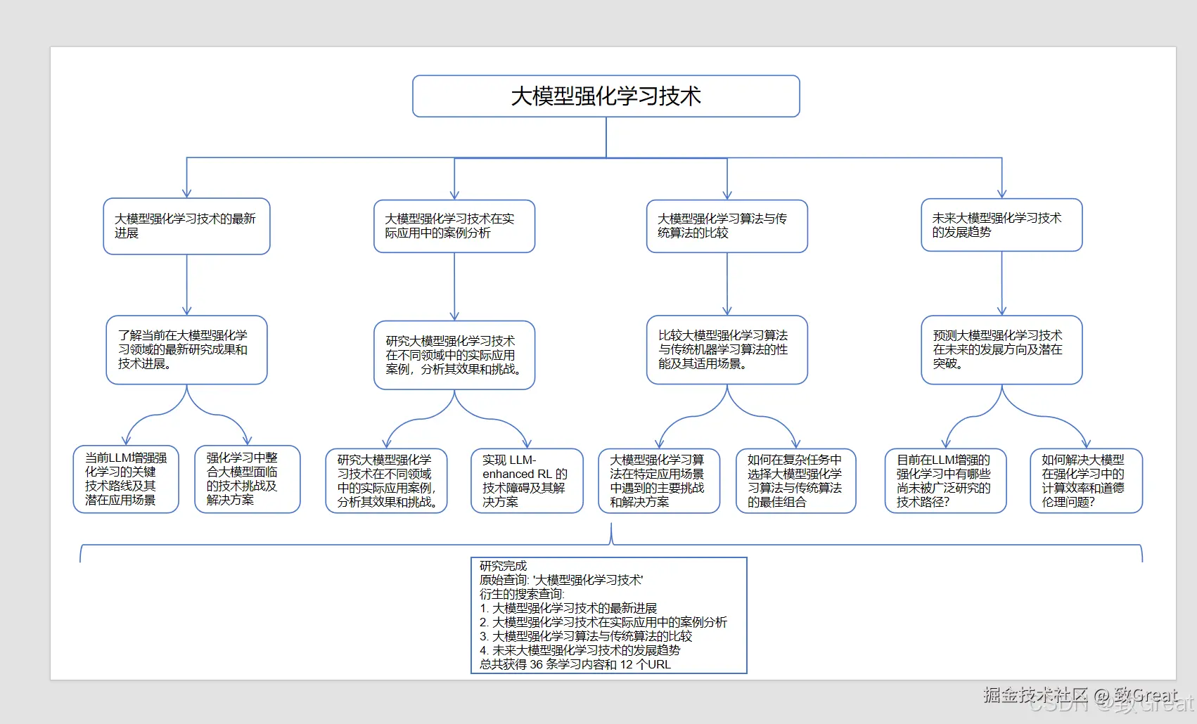 下面是一个测试例子,查询问题为:大模型强化学习技术