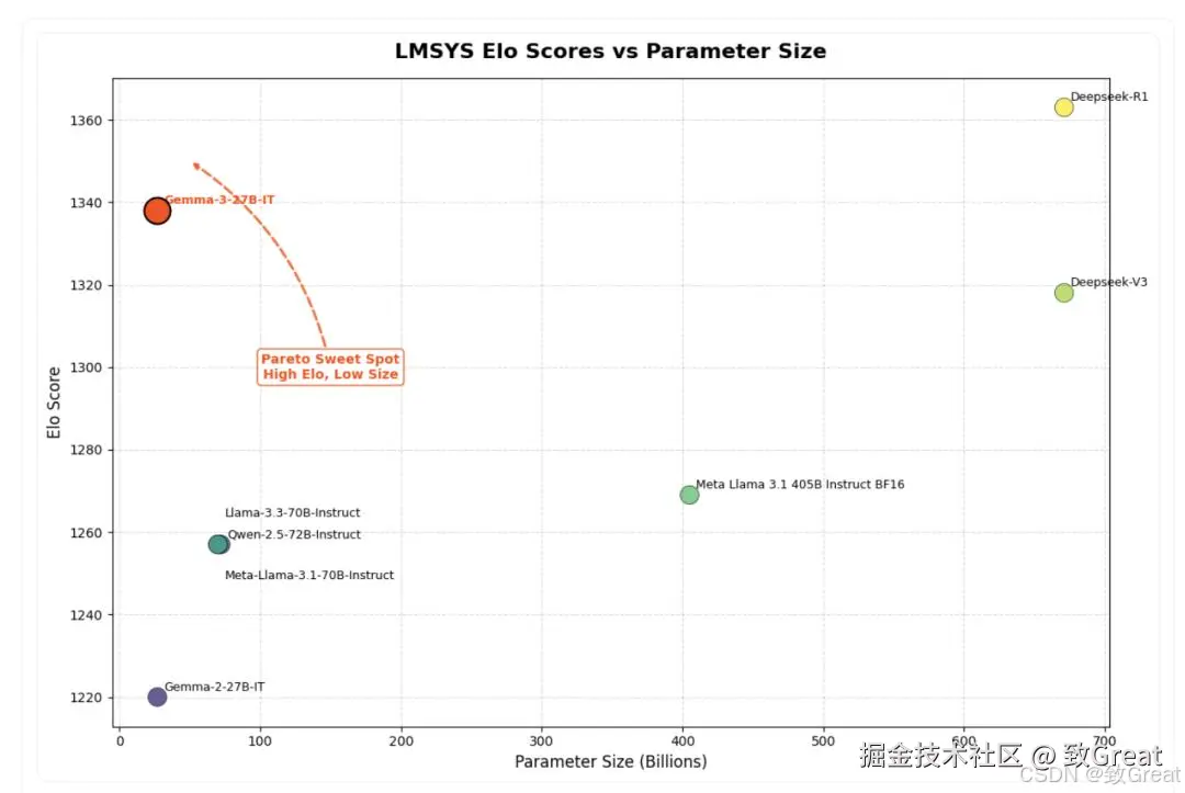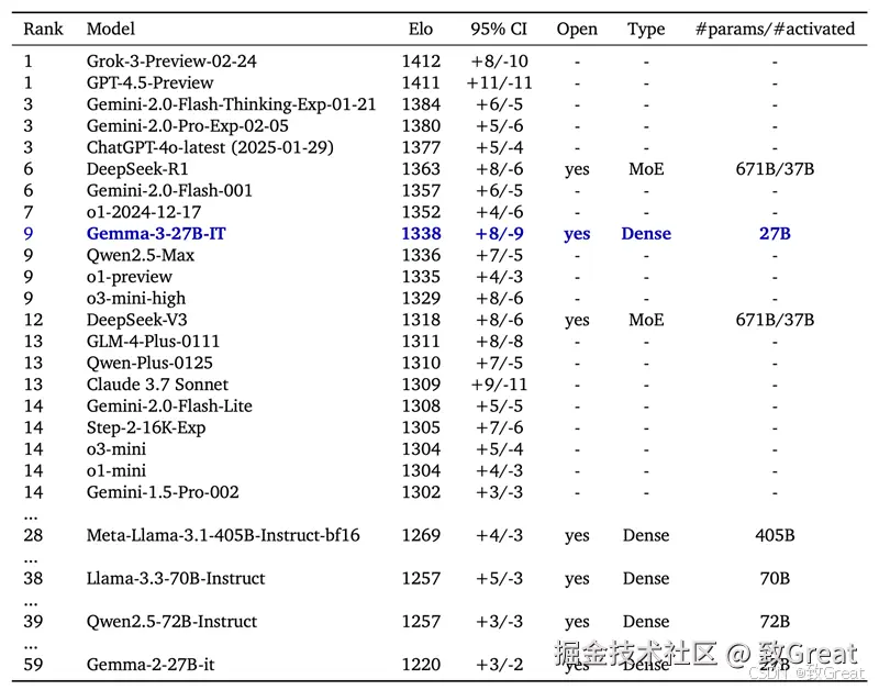 LMSYS Chatbot Arena的人类盲测评估中位居前十的 Gemma 3 27B IT 模型,超越了许多更大规模的开源模型,例如 DeepSeek-V3、LLaMA 3 405B 和 Qwen2.5–70B。