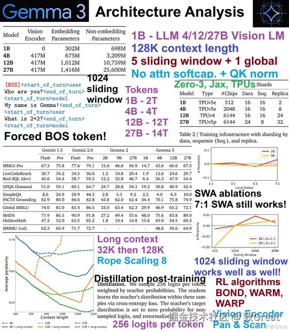 Gemma 3 支架了Gemma 系列的解码器专用Transformer架构,并在架构和训练上进行了化: