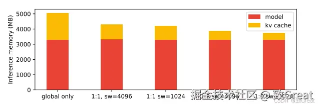 Gemma 3 通过增加“局部注意力层(local attention layers)”相较于全局注意力层(global attention layers)的比例,并缩短局部注意力的跨度(仅 1024 个 tokens),减少了长上下文时 KV 缓存爆炸问题。