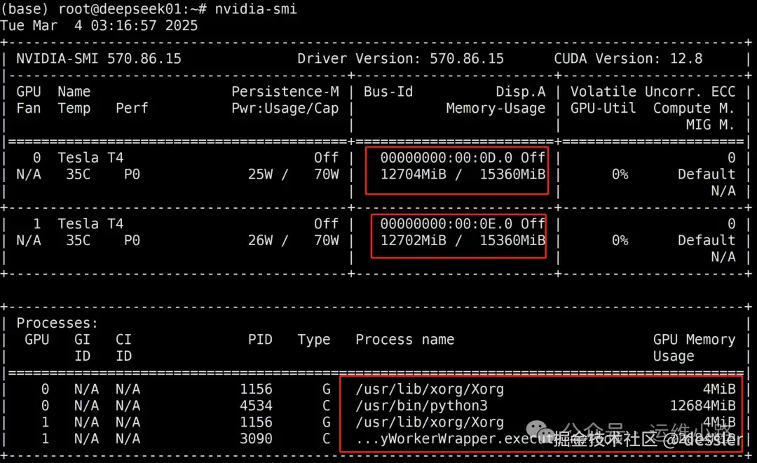 /root/.cache/huggingface/:指定模型存储路径,其实就是我们启动容器的挂载进去的目录--tensor-parallel-size 2 设置张量并行度为2,这意味着模型将在两个GPU上分割运行。简单理解就是每个机器有几张卡就选多少。--pipeline-parallel-size 3 设置流水线并行度为3,模型将被分为三个阶段来执行。简单理解就是有几个机器都选多少。--served-model-name "DeepSeek":设置服务暴露的模型名称为 “DeepSeek”。--host 0.0.0.0:设置服务监听所有的网络接口。--port 8000:设置服务端口为8000。--gpu_memory_utilization 0.95:设置GPU显存利用率阈值为95%。--trust-remote-code:允许执行模型自定义代码,这可能会带来安全风险。--max-num-batched-tokens 8192:设置单批次最大token数为8192。--max-model-len 16384:设置模型最大上下文长度为16384。--enable-reasoning:启用推理增强模式。--reasoning-parser deepseek_r1:指定推理解析器为 “deepseek_r1”。--enable-prefix-caching:激活前缀缓存优化。--enable-chunked-prefill:启用分块预填充。--dtype=half:使用半精度浮点数(FP16),这有助于减少显存使用并可能提高推理速度。