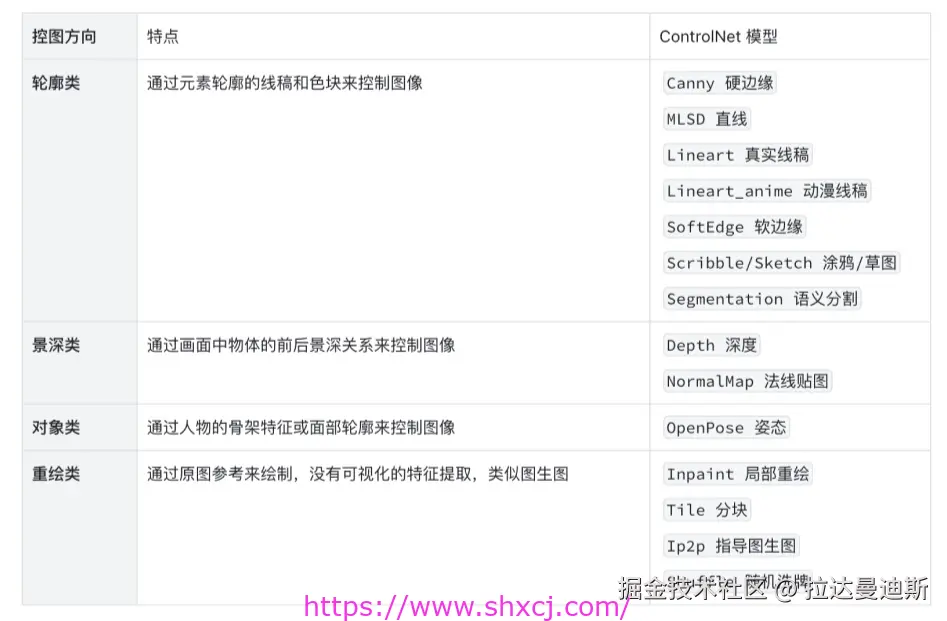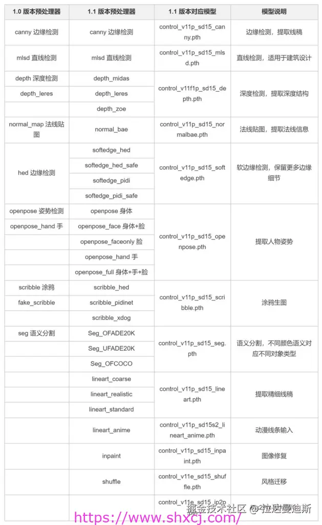 ControlNet 主要的预处理器和其作用请见下图: