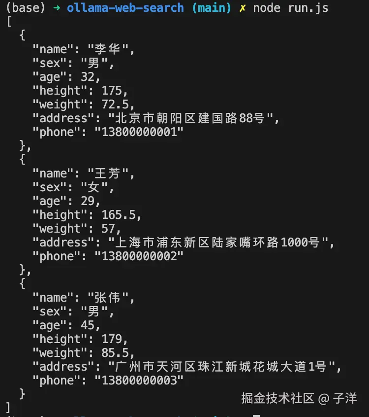例如,下面的示例通过 generateObject 生成了十组数据。需要注意的是,该方法依赖于 zod 库,需要提前安装。