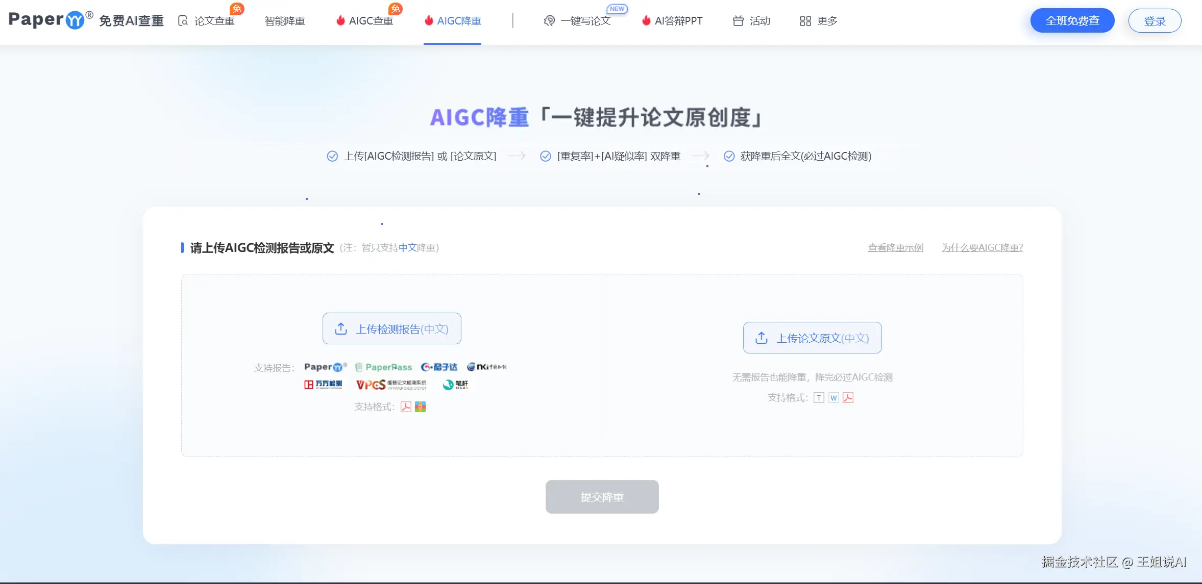 PaperYY也有它独特的降重方式,你只要上传AIGC检测报告或者论文原文,系统就会自动识别并且处理那些有可能被识别为AI生成的内容。经过它处理后的文章,在各种查重平台的检测中,通过的概率似乎更高了,感觉就像是给文章穿上了一层“保护衣”。