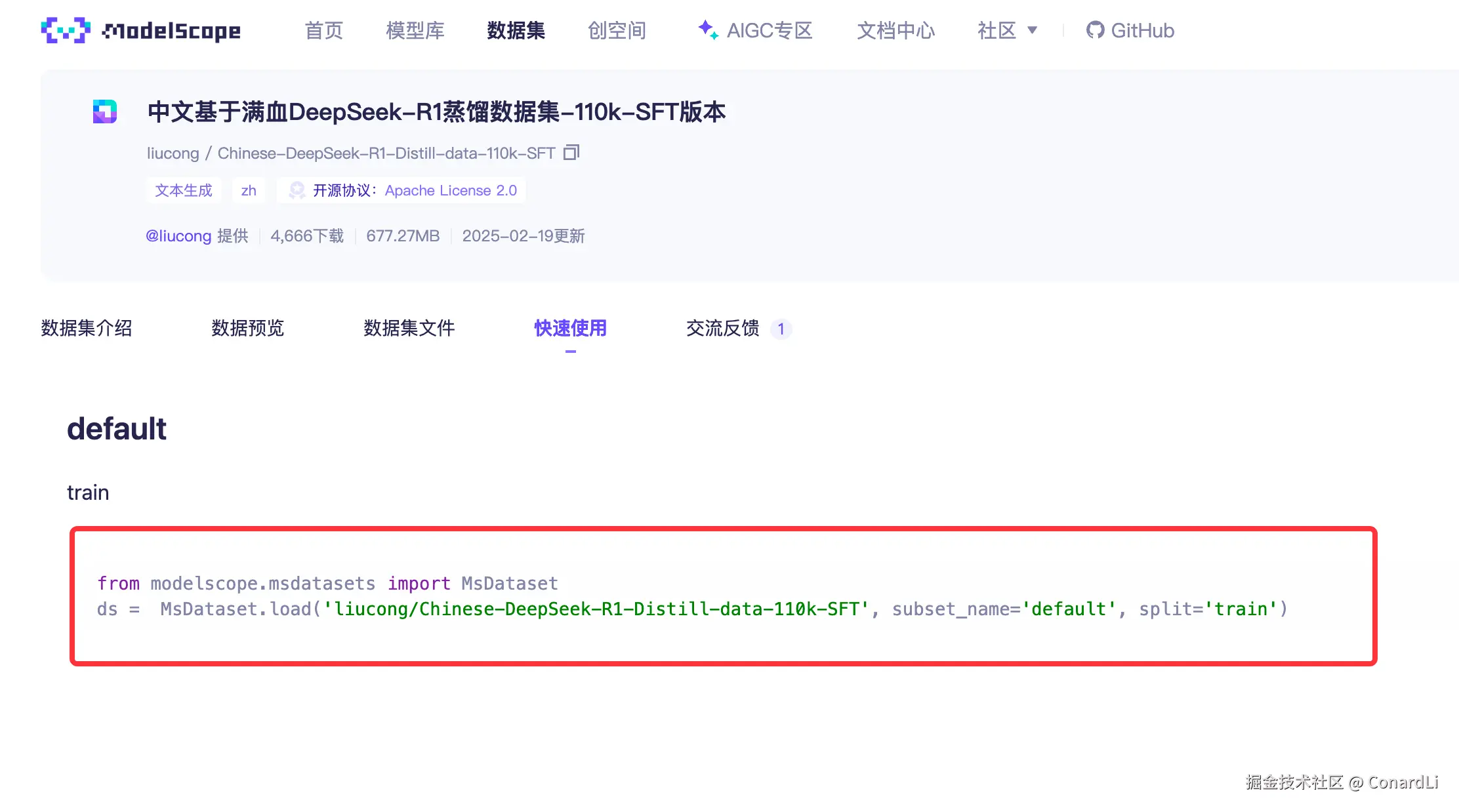 ModelScope 同样也提供了用于拉取数据集的 SDK: