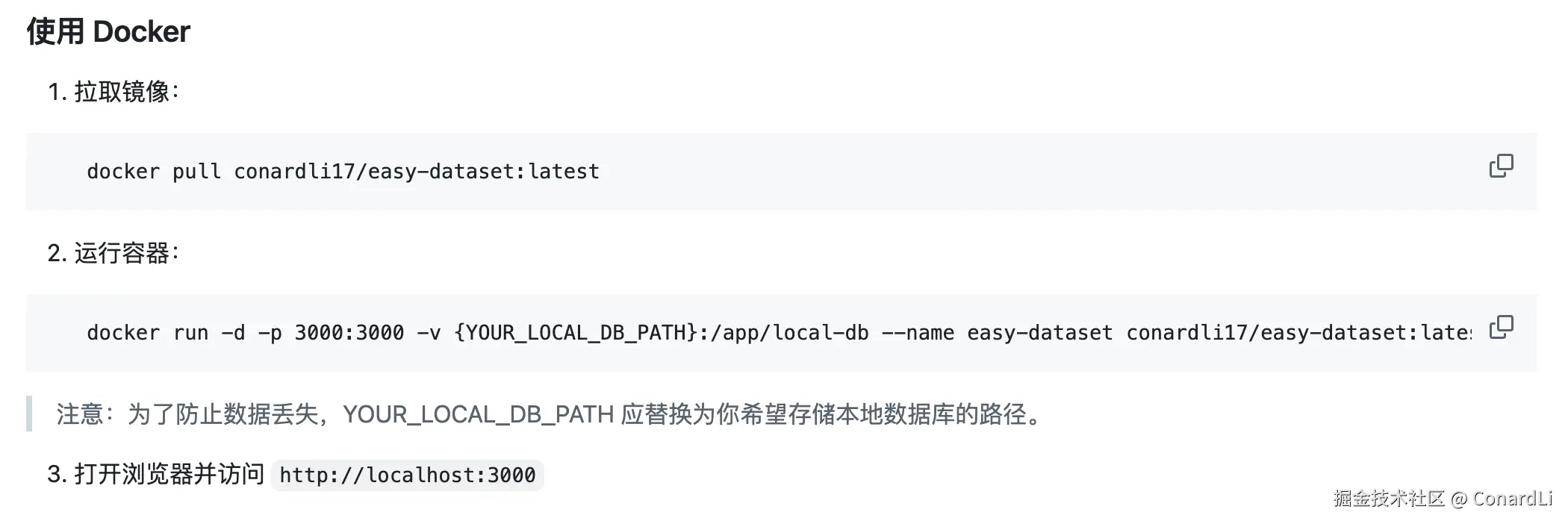 首先我们到 github.com/ConardLi/ea… ,可以看到项目提供了两种本地启动方式。