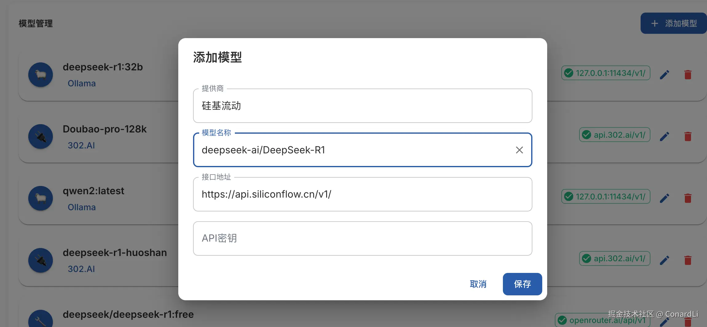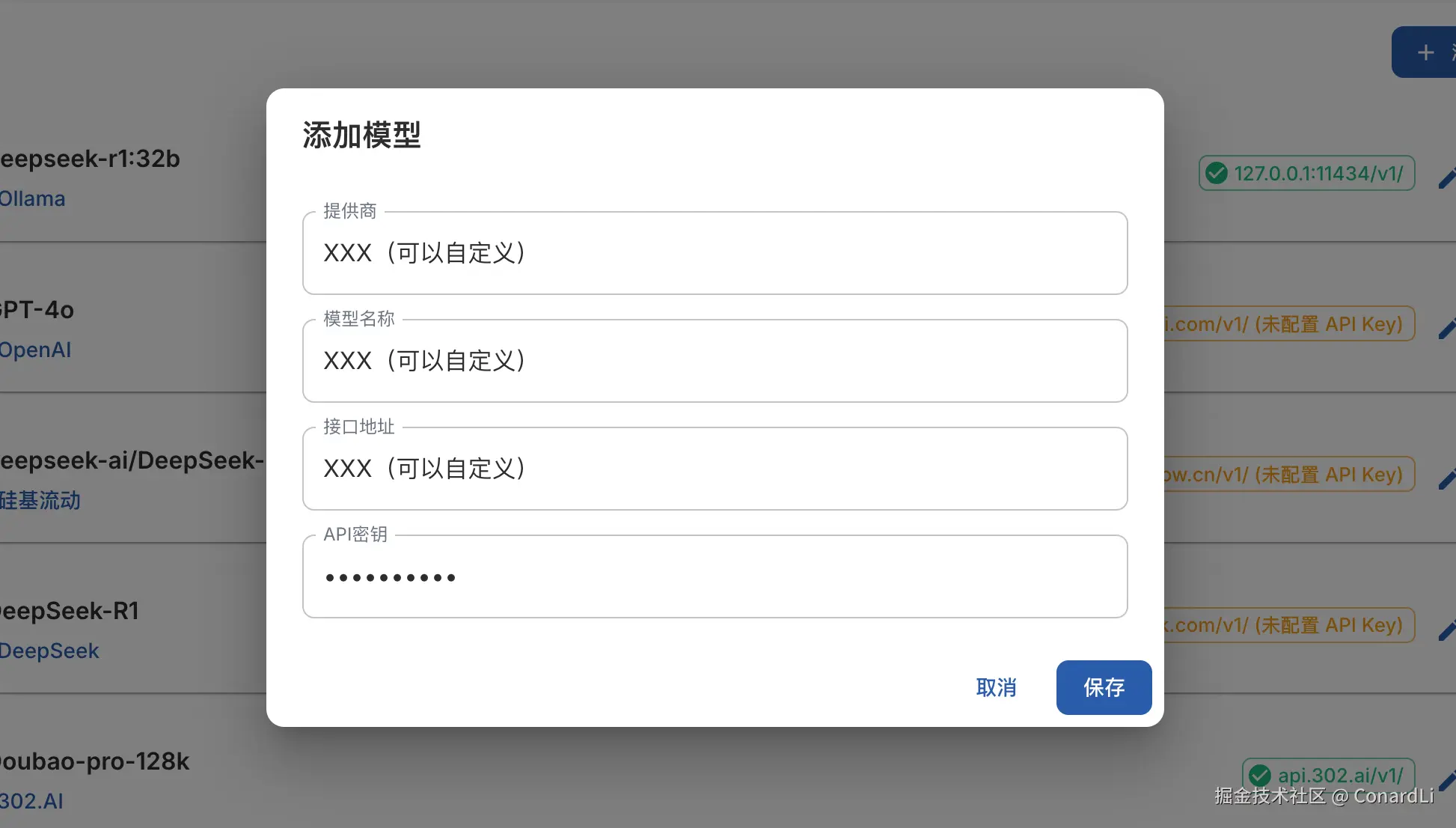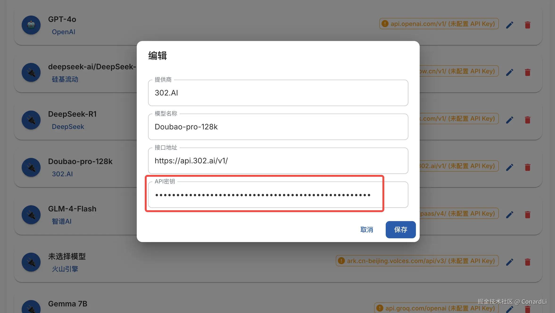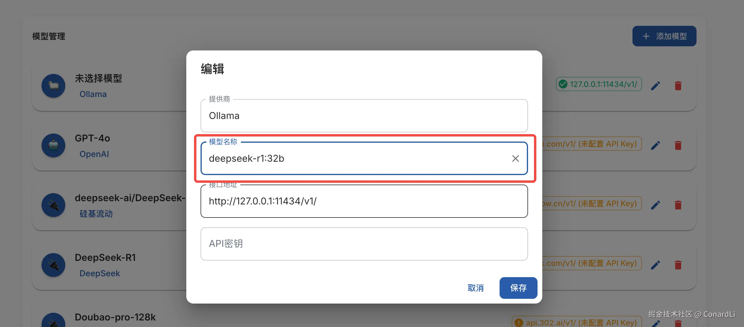 或者编辑其他模型提供商,输入 API 密钥,以及模型名称即可: