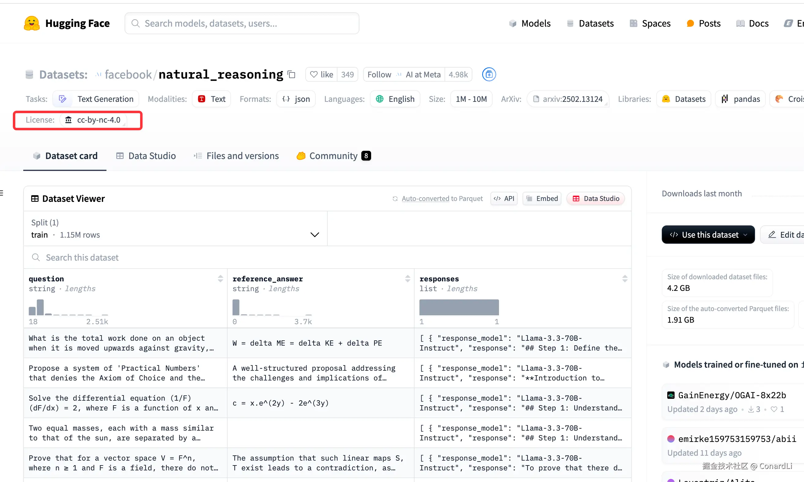 比如下面这个 Facebook 提供的推理数据集,协议为 cc-by-nc-4.0 ,