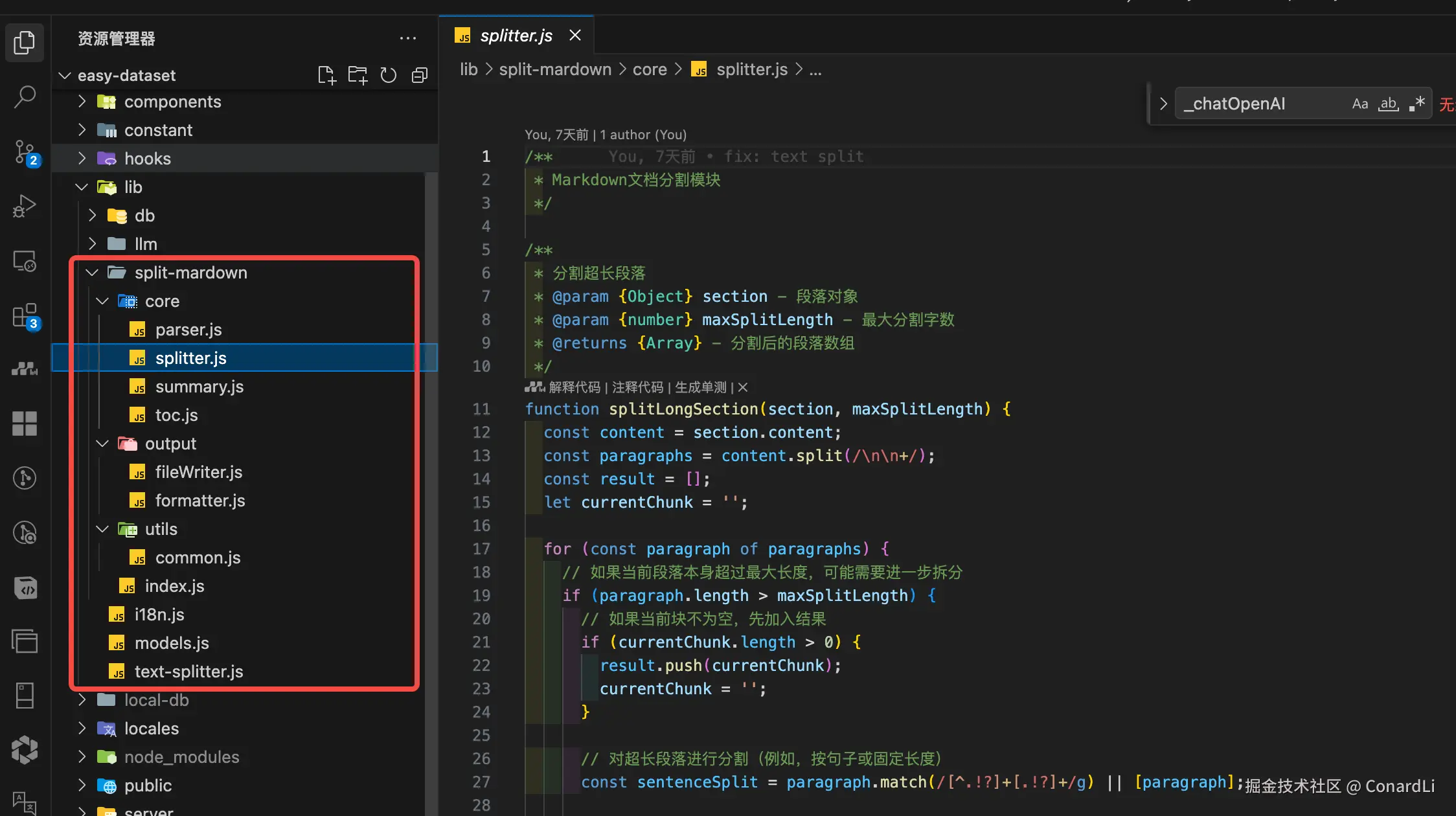 为了解决这个问题,我决定自己实现一套加强版的递归分块的算法,也就是代码里的 lib/split-mardown 模块: