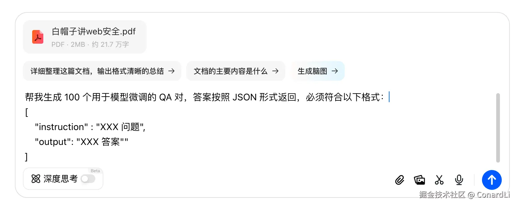 - 直接将文档丢给 AI ,但是 AI 对于大文件生成的 QA 对效果比较差