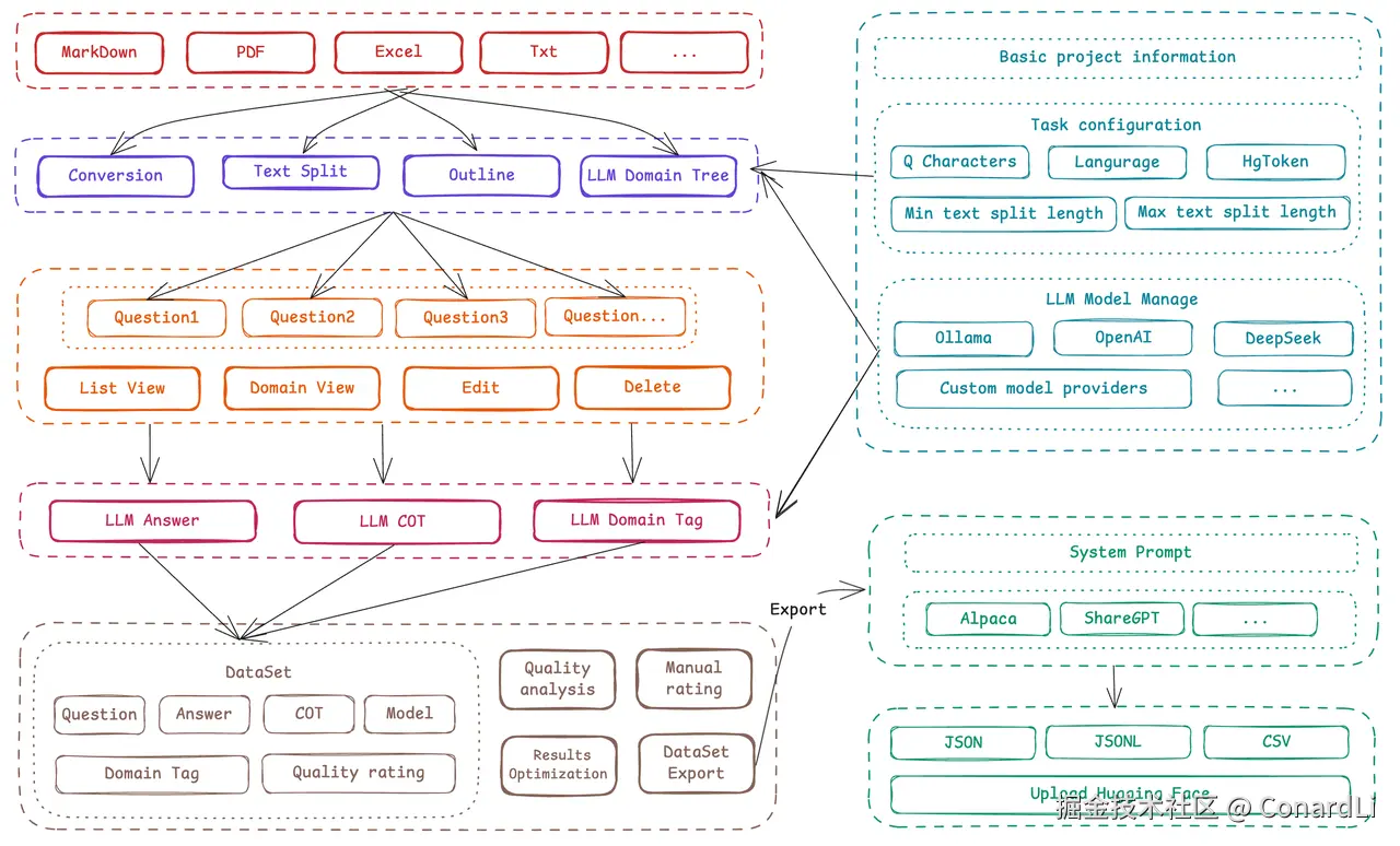 于是就有了 Easy DataSet 这个开源项目,这个项目是我真正为解决以上问题,完全从大家需求的角度出发,从零编写的一个项目,希望能够满足大家对于数据集构造的各种场景。