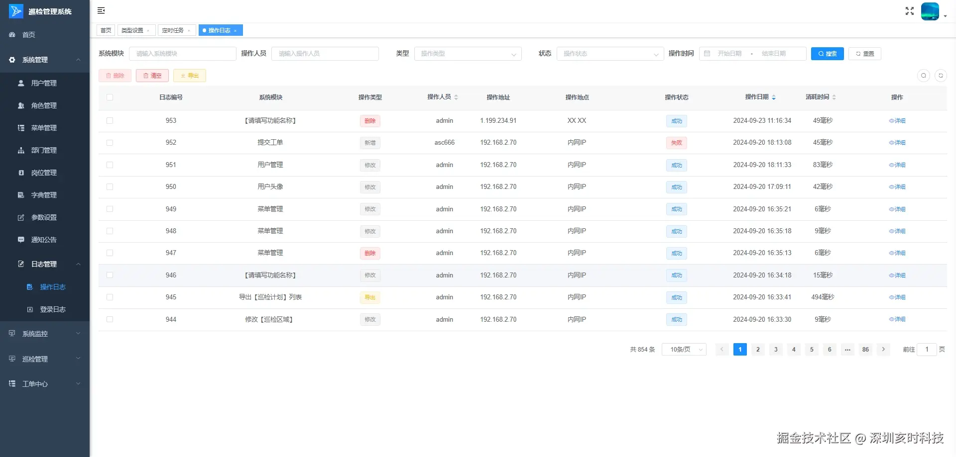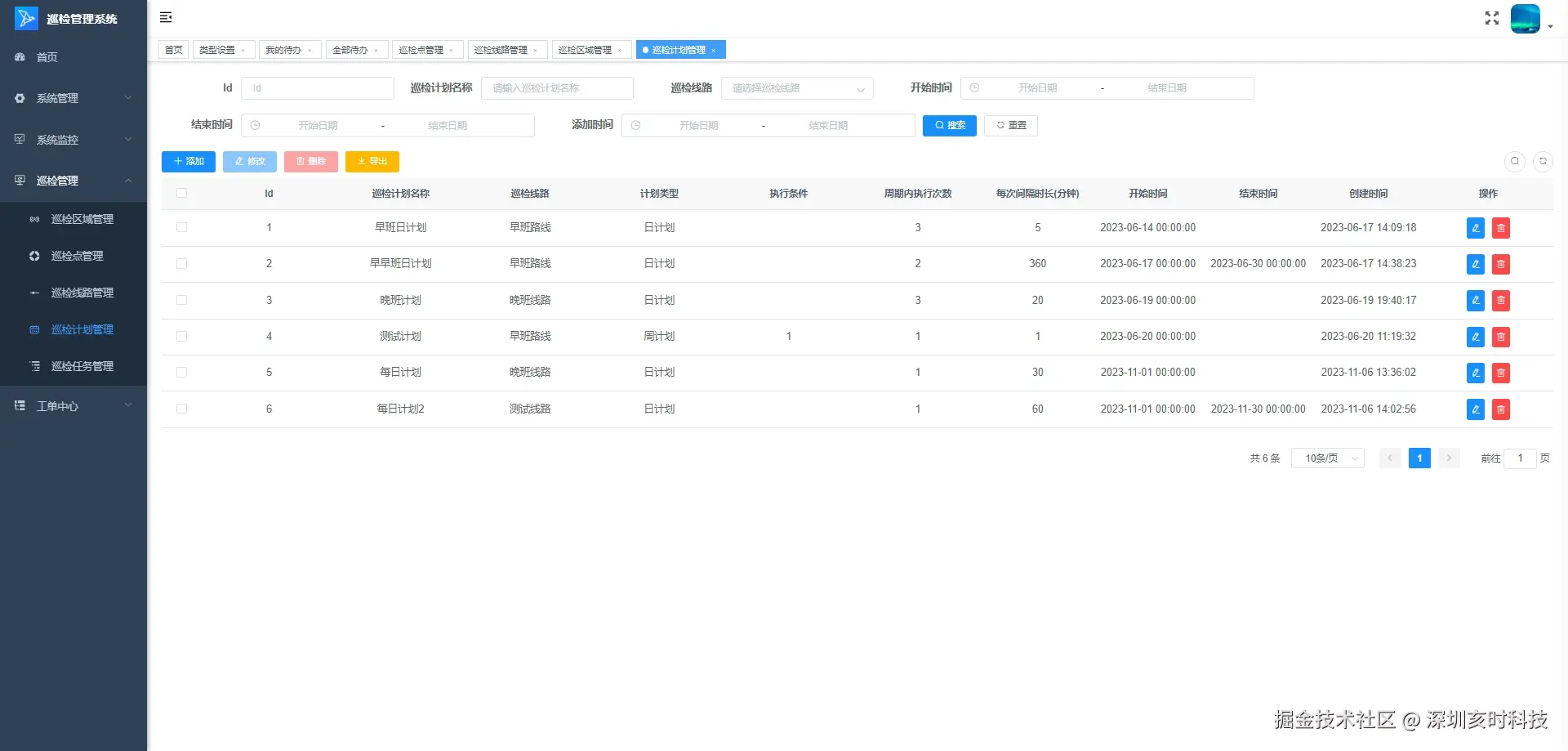 - 巡检计划管理:制定和调整巡检计划,包括计划的周期、时间、参与人员、巡检区域和巡检点,以及计划的执行和跟踪。