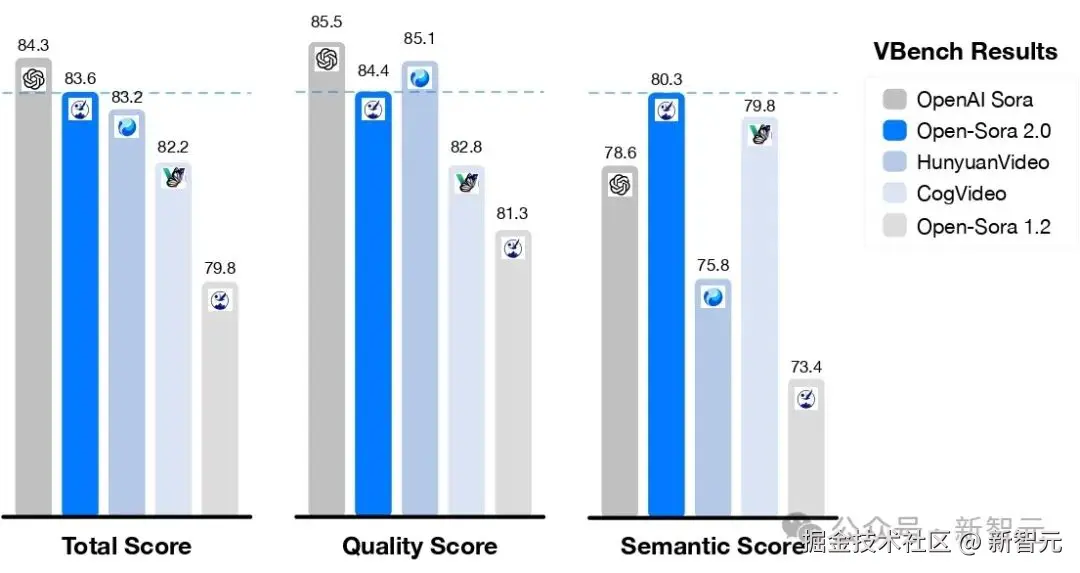 此外,Open-Sora 2.0 在 VBench 评测中取得的分数已超过腾讯的 HunyuanVideo,以更低的成本实现了更高的性能,为开源视频生成技术树立了全新标杆!