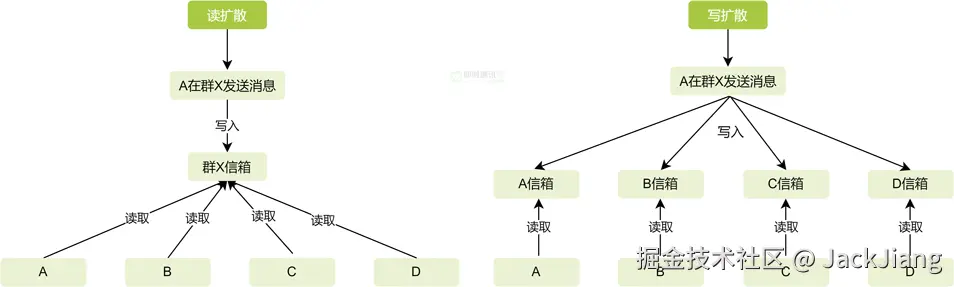 群聊消息的分发方式,主流有2种方式:读扩散、写扩散。