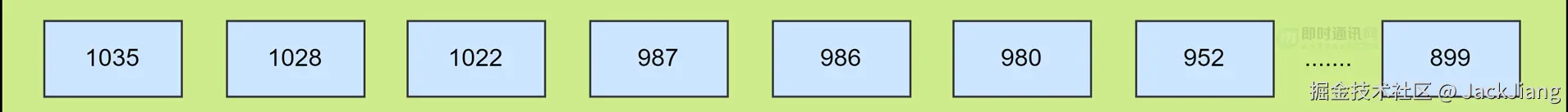 **如上图所示:**每个群都会构建一个长度为100,score 和 member 都是消息ID,可以通过 zrevrank 命令得到某个 offset 的排名值,该值可以换算成未读数。