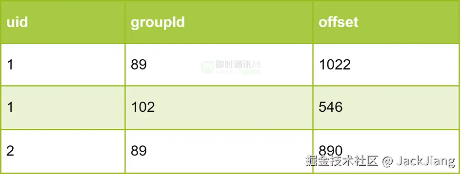 **但是事情并没这么简单:**一个用户有很多群,每个群都要展示未读数,因此要求未读数统计的程序效率要高,不然用户体验就很差,很明显这个 SQL 的耗时波动很大,取决于 offset 的位置,如果很靠后,SQL 执行时间会非常长。