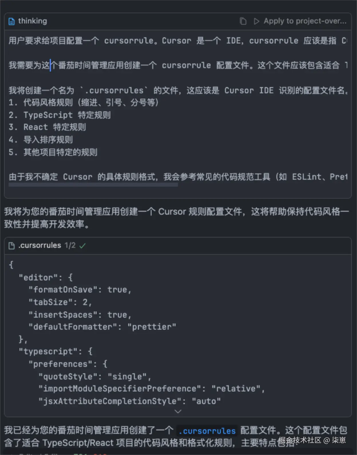 最近又用 cursor 做了一个小应用,番茄时钟,用来管理自己的时间,提高效率。然后使用 cursor 开发的过程中。有了一些新的感悟。找打了一条可以让 Curosr不跑题的办法。