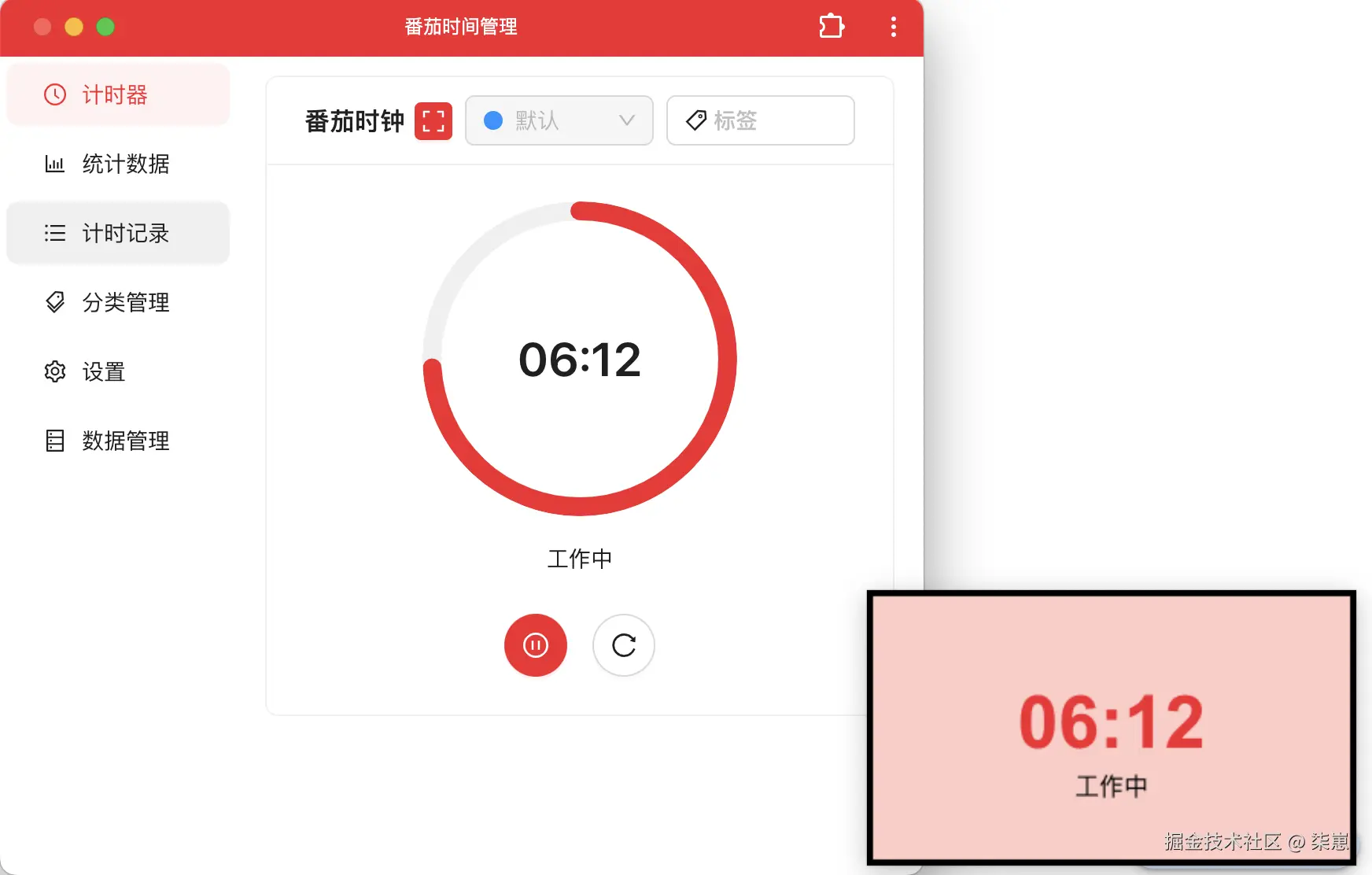 - **画中画模式** :支持在浏览器中使用画中画模式显示计时器