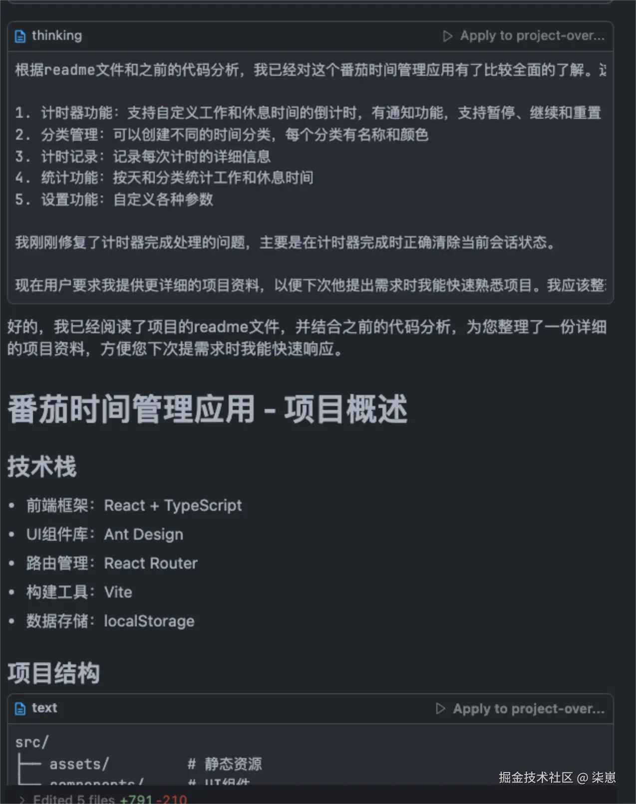 最近又用 cursor 做了一个小应用,番茄时钟,用来管理自己的时间,提高效率。然后使用 cursor 开发的过程中。有了一些新的感悟。找打了一条可以让 Curosr不跑题的办法。
