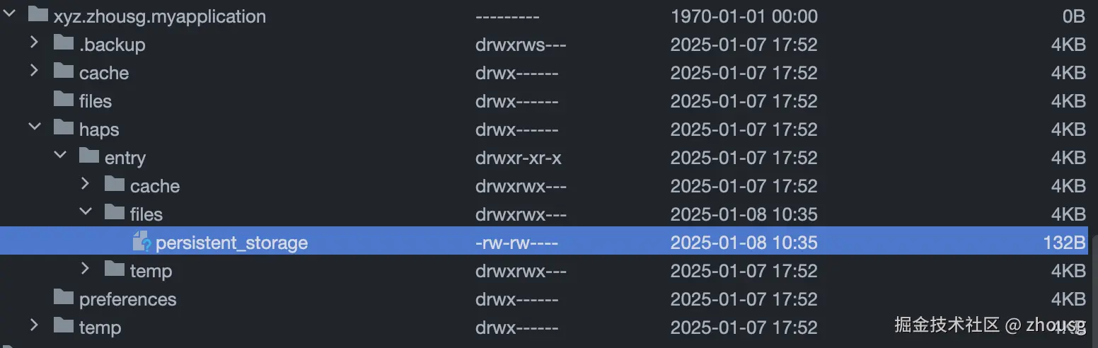 - 目录 /data/app/el2/100/base/包名/haps/entry/files/persistent_storage