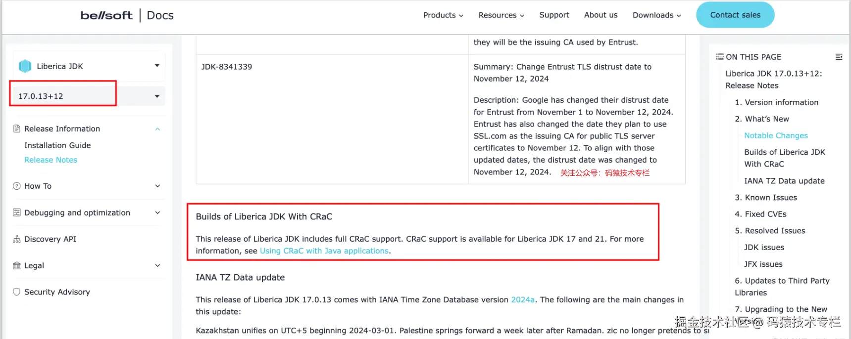 - Liberica JDK 17 和 Liberica JDK 21 也提供了对 CRaC 的支持。