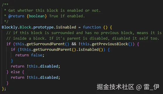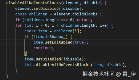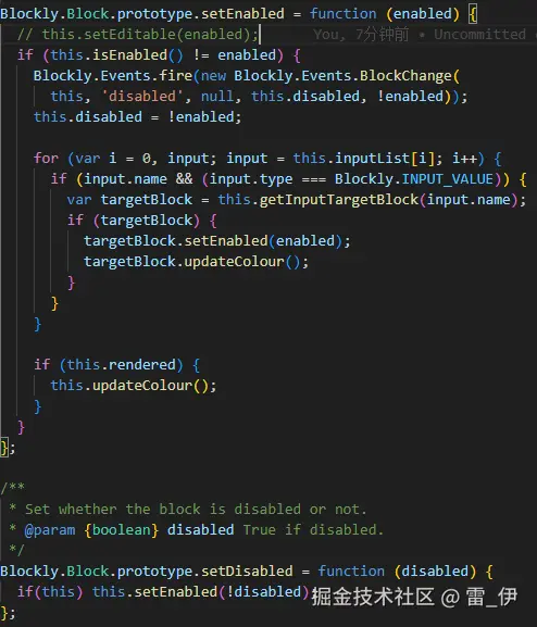 (1) 积木禁用就调用scratch-blocks/core/block.js的setDisabled方法,这个方法会去调用setEnabled方法