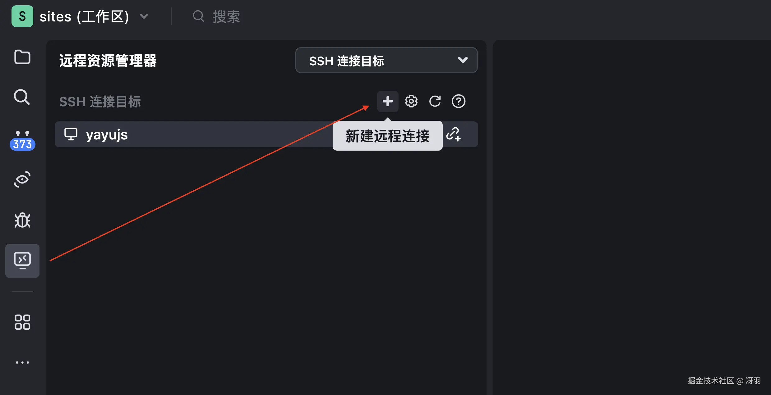 - 打开远程资源管理器,然后点击 + 按钮。