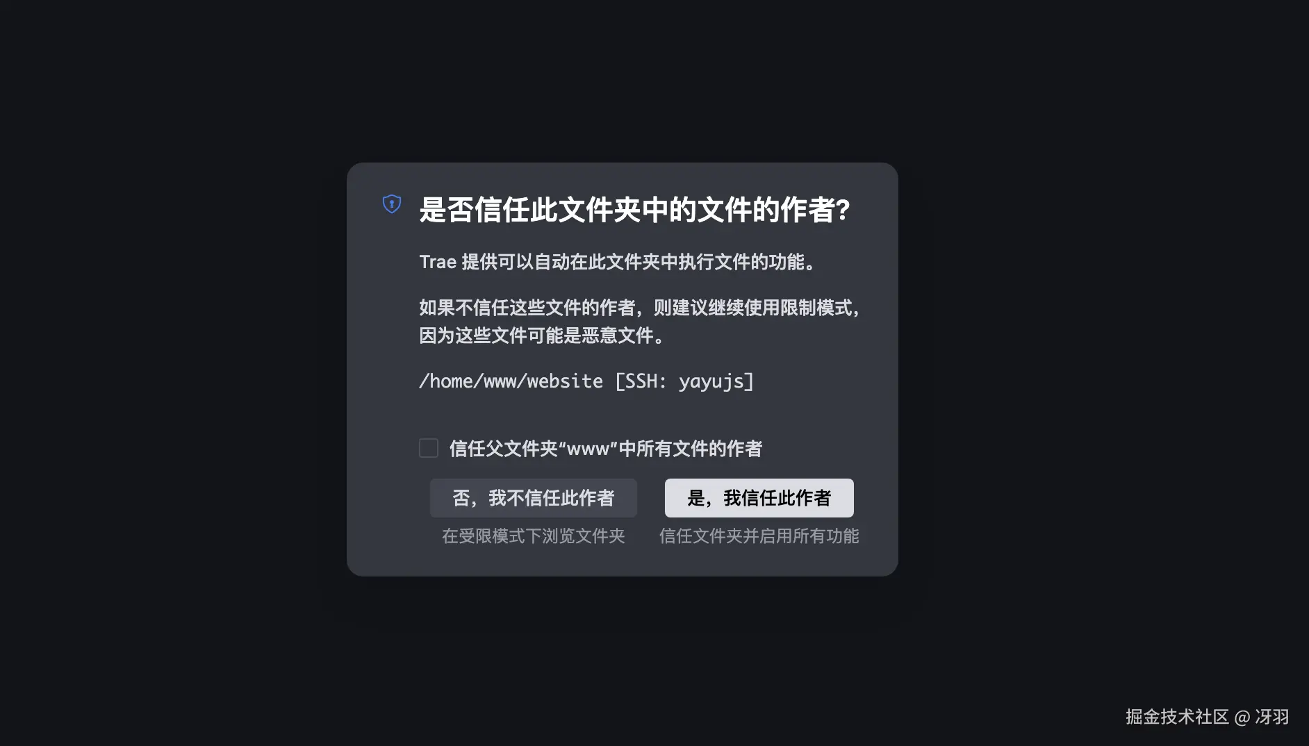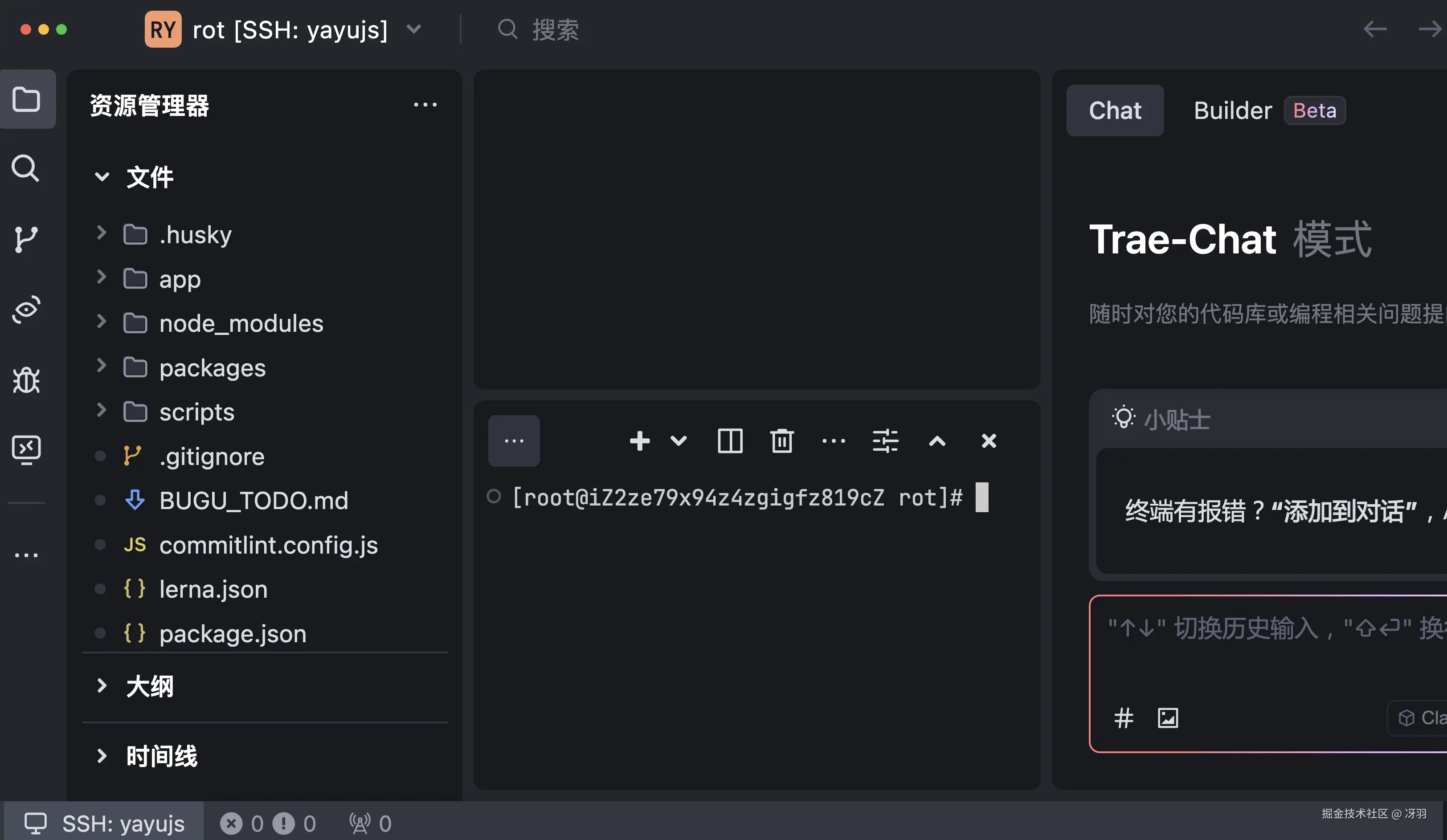 首次会有脚本安装提示,这是因为当你通过 Trae 连接本地 PC 与远程主机时,系统会自动在远程主机的操作系统上安装 Trae 服务端。