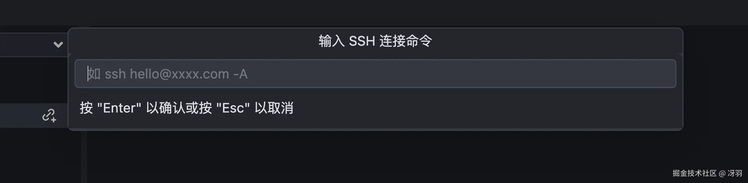 界面上显示 输入 SSH 连接命令 面板。