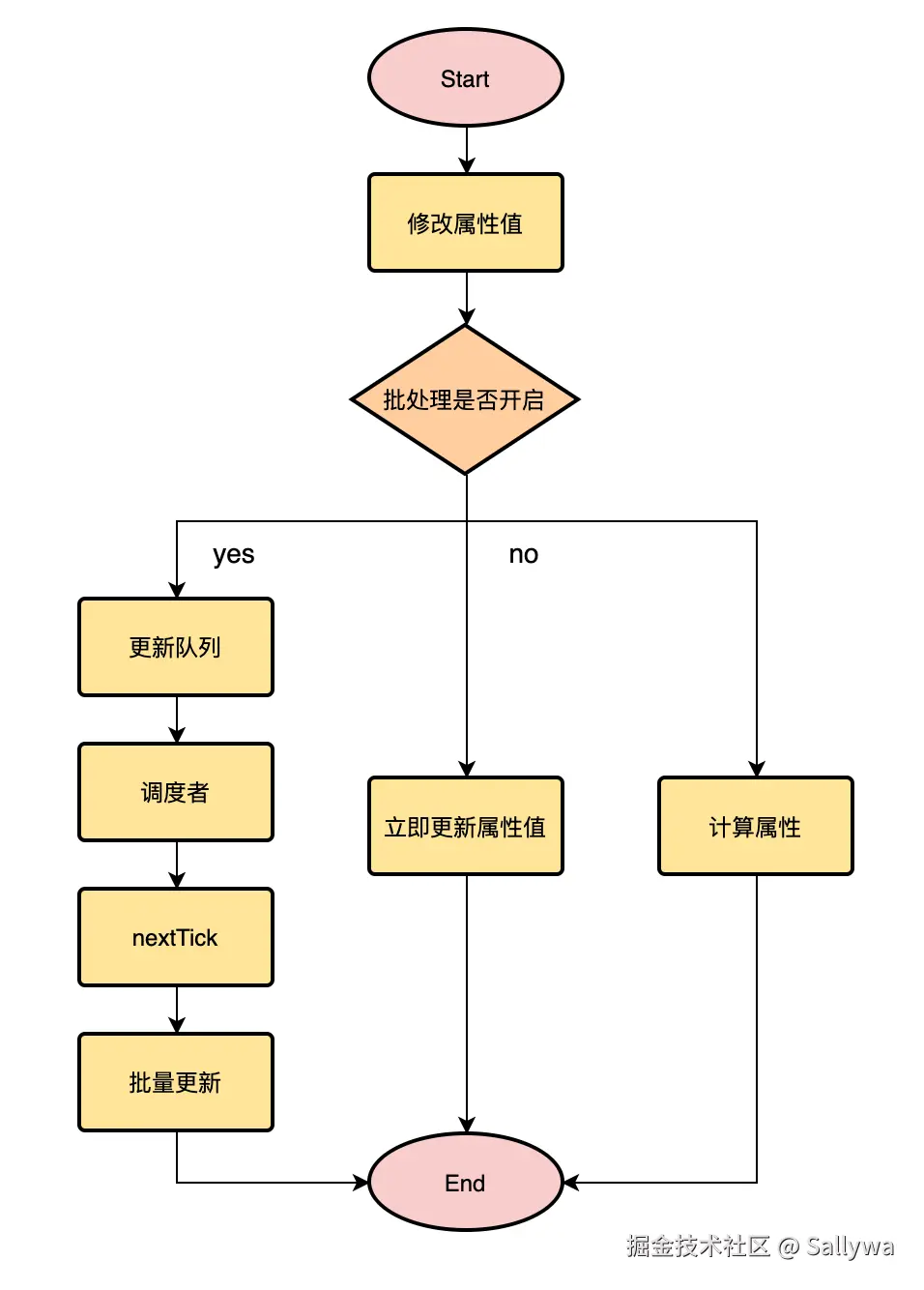 Vue批处理的原理:Vue本轮事件循环中所有触发的watcher添加到一个队列里交由
