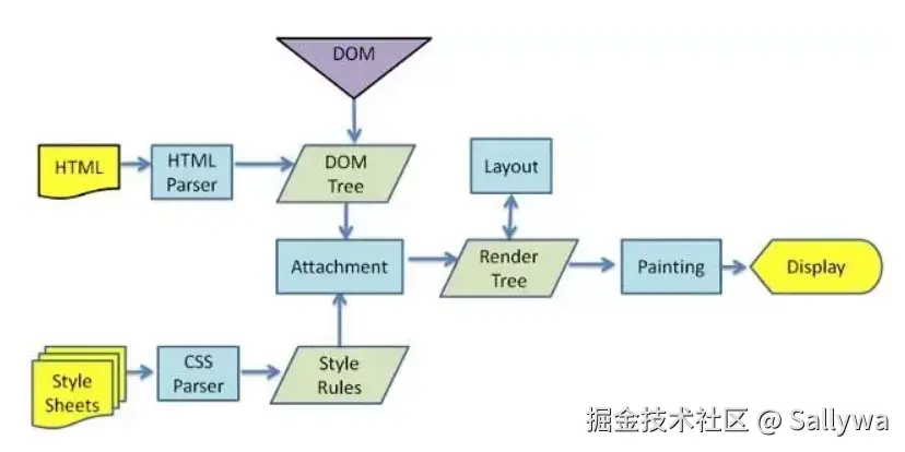 创建DOM tree –> 创建Style Rules -> 构建Render tree -> 布局Layout –> 绘制Painting