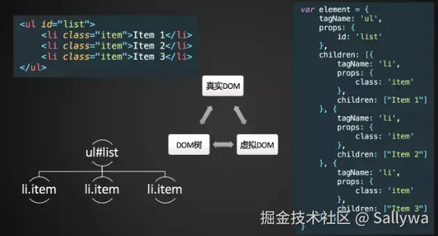 - JS 对象表示的虚拟DOM