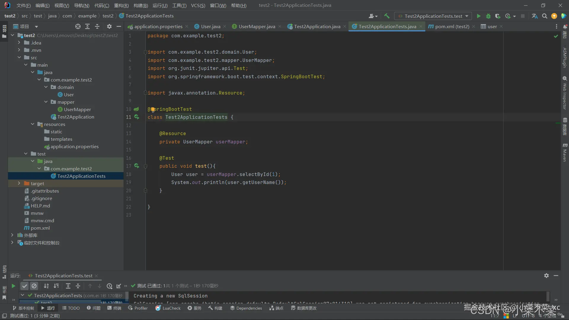最后记得在启动类上加上扫描注解@MapperScan("com.example.*.mapper"),这样进行扫描后才能进行使用