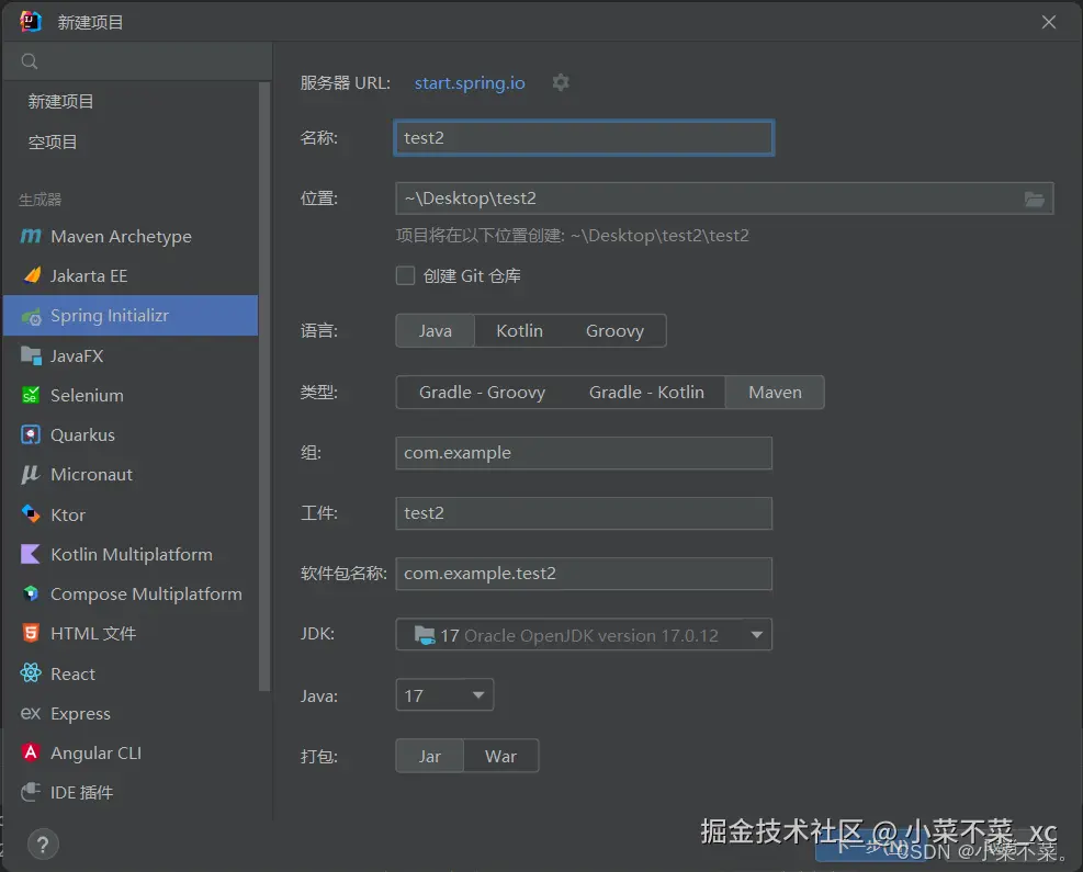 首先启动IDEA并创建一个springboot项目,输入相关信息后点击下一步