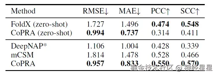 尽管没有看到任何突变复合物结构,但这种优越的性能来源于双重预训练目标,这一表现证明了 CoPRA 在不同亲和力相关任务上的泛化能力。