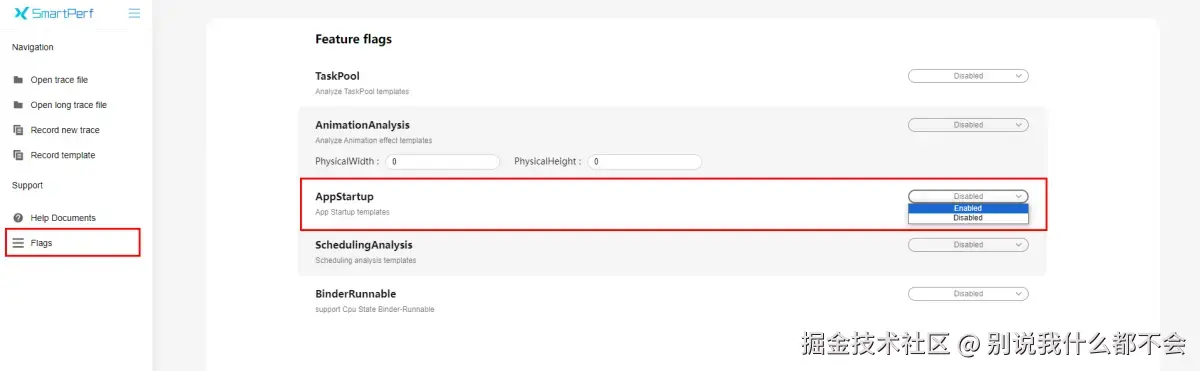 - 切换到Flags页面,将AppStartup选项切换到Enabled,开启AppStartup模板。