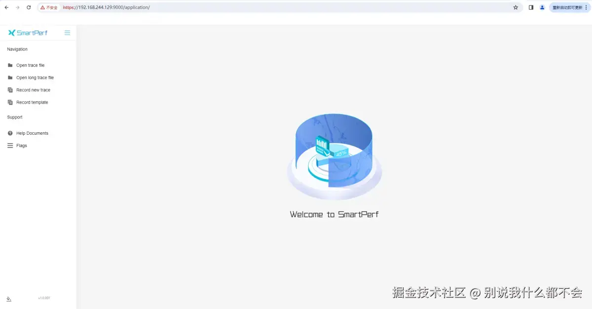 使用SmartPerf-Host进行性能分析前,需要先完成本地部署,本地部署的详细指导请参考如何编译TraceStreamer和SmartPerf-Host编译部署指导。在本地部署成功后,可通过https://[部署机器ip地址]:9000/application/访问,如下图。