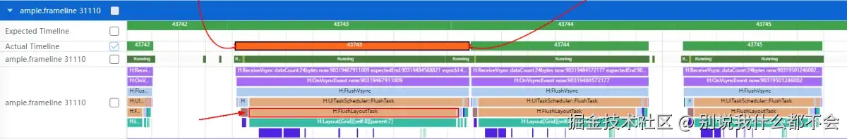 Expected Timeline是理想帧泳道图,Actual Timeline是真实帧泳道图。